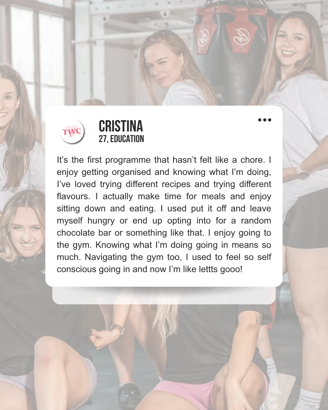 Let’s not beat around the bush, a calorie deficit is a form of restriction. But restriction doesn’t have to mean misery, cutting out foods you love or obsessing over numbers. Inside The Wellness Club, we use flexible structure. So you’ll have clear targets, but still eat meals you enjoy, go out socially and live your normal life while losing fat. WOO!
